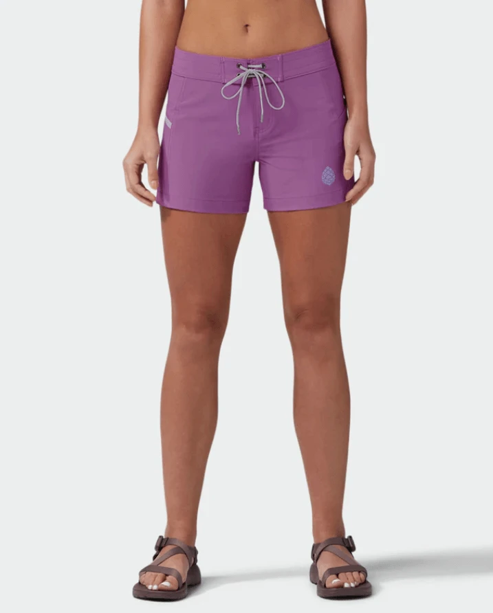 Multi-day river trips, evening SUP sessions or rest-day cliff jumping—the Stio CFS Board Short is a stretchy, all-purpose mountain water short, perfect for summer hikes and shoulder-season surf trips. Made with Stio’s water-resistant, quick-drying Spheroâ„¢ HO poplin fabric with four-way stretch and UPF 50+ sun protection, the CFS provides the mobility you need for any aquatic adventures. A hook-and-loop waist closure with an adjustable drawstring helps secure the perfect fit, while flattering feminine styling and shorter leg length make for unrestricted range of motion.